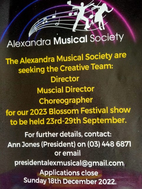The Alexandra Musical Society are seeking the creative team for their 2023 Blossom …