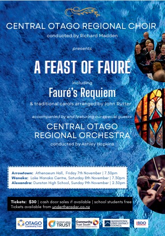 Central Otago Regional Choir and the Central Otago Regional Orchestra - "A Feast of Fauré". Arrowtown, Alexandra and Wanaka.