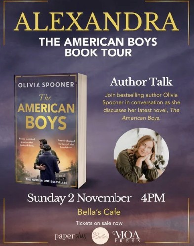 Get along to Bella’s Coffee and Ice Cream in Alexandra, in association with Paper Plus Alexandra, to listen to Olivia Spooner talk about her new novel, "The American Boys".
