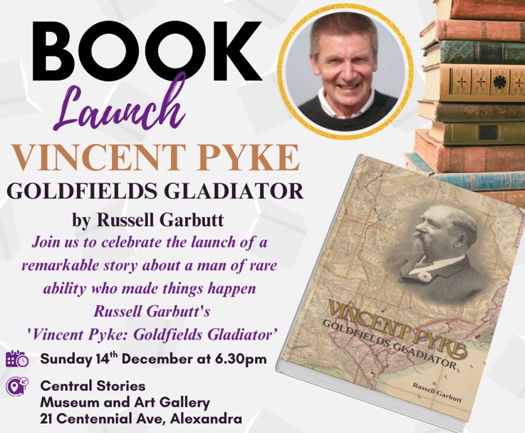 • Central Stories Museum and Art Gallery - Book Launch. Vincent Pyke - Goldfields Gladiator by Russell Garbutt.
