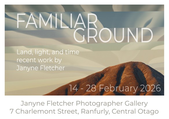 Janyne is a respected photographic artist whose work has been widely recognised, including being awarded Grand Master status by the New Zealand Institute of Professional Photography (NZIPP) — the Institute’s highest distinction. “Familiar Ground” continues her established practice of creating thoughtful, place-based work that blends careful observation with personal reflection. The exhibition will run until the end of February, with works available to view and purchase during normal gallery hours at her Charlemont Street gallery in Ranfurly, and online at www.janynefletcher.co.nz.
